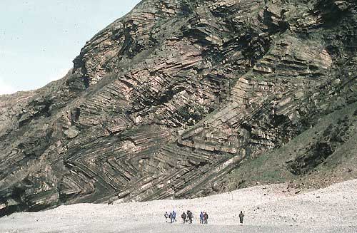 Mnoho vrstev je příliš pevně stočeno. V mnoha horských oblastech jsou vrstvy silné stovky metrů stočeny do ostrých záhybů. Klasická geologická teorie říká, že tyto formace byly hluboko založeny a tuhly stovky milionů let před svým stočením. Ale často velmi ostré stočení s malým rádiusem je bez popraskání – potom by vnitřní strana ohnutí musela být v době ohýbání ještě mokrá a měkká. To implikuje, že zkrucování probíhalo méně jak tisíce let (to je maximum) po usazení sedimentu. [1]