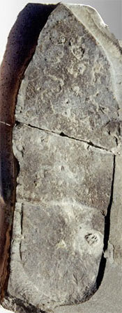 Když zkušený sběratel držel v rukou kamennou destičku, myslel, že ho šálí smysly: viděl otisky lidských nohou, a pravěký člověk, který stopu zanechal, nosil boty! Nebyly vidět otisky prstů, pat ani klenby, ale zřetelné hrany zašpičatělých bot: 32,5 cm dlouhých, 11,25 cm širokých, v patách jen 7,5 cm...