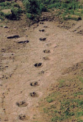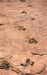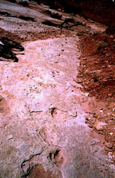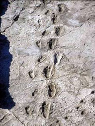 Ano... Něco zde chybí. A to je návaznost. Jak to, že byla objevena jen jedna stopa? Porovnejte obrázeky nahoře a tuto fotografii. A to jsou ještě mnohdy nalezeny stopy více živočichů pohromadě. Chybí zde jakýkoliv důkaz o tom, že tato stopa náleží do nějaké sekvence stop tak jak je můžete vidět na obrázku 2.