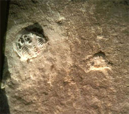 | Obr. 3 Meistersův otisk a detail trilobita |